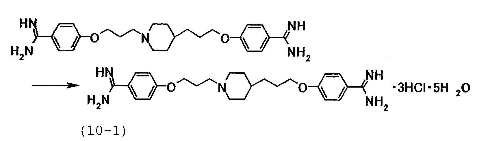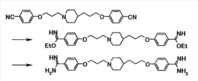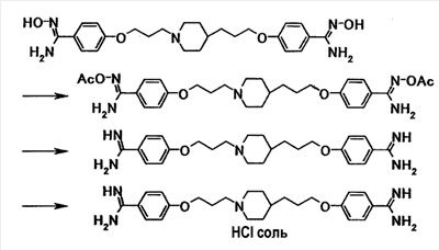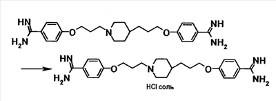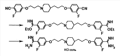 5. 4-{3-[4-(3-{4-[амино(имино)метил]фенокси}пропил) -1-пиперидинил]пропокси}бензамидин тригидрохлорид пентагидрат.