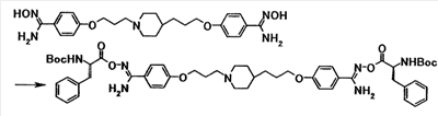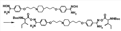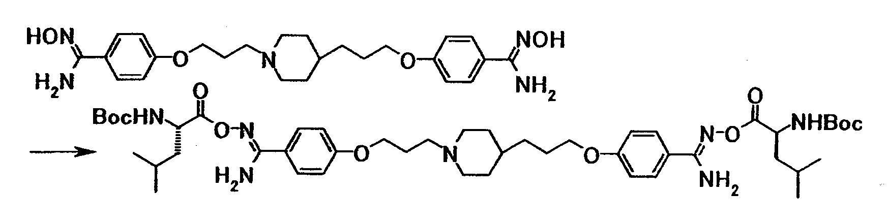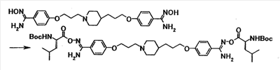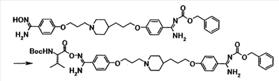 К раствору 0,23 г моногидрата N-(трет-бутоксикарбонил)-L-лейцина в N-метил-2-пирролидоне (5 мл) добавляли при комнатной температуре 0,34 г 1,1′-карбонилдиимидазола, полученную смесь затем перемешивали при указанной температуре в течение 1 часа и 30 минут. К смеси добавляли при комнатной температуре раствор 0,20 г 4-{3-[4-(3-{4-[амино(гидроксиимино)метил]фенокси}пропил)-1-пиперидинил]пропокси}бензамидоксима в N-метил-2-пирролидоне (5 мл), полученную смесь затем перемешивали при указанной температуре в течение 5 часов. Реакционную смесь добавляли к смеси этилацетата и воды. Органический слой отделяли, промывали насыщенным водным раствором хлорида натрия и затем сушили при помощи безводного сульфата магния с последующей отгонкой растворителя при пониженном давлении. Полученный остаток очищали, используя колоночную хроматографию на силикагеле (элюент; хлороформ:метанол = 10:1), с получением 0,14 г 4-(3-{4-[3-(4-{амино[(2S)-2-(трет-бутоксикарбонил) амино-4-метилпентаноилоксиимино]метил}фенокси)пропил]-1-пиперидинил}пропокси)бензамид О-[(2S)-2(трет-бутоксикарбонил)амино-4-метилпентаноил]оксима в виде белого твердого вещества.