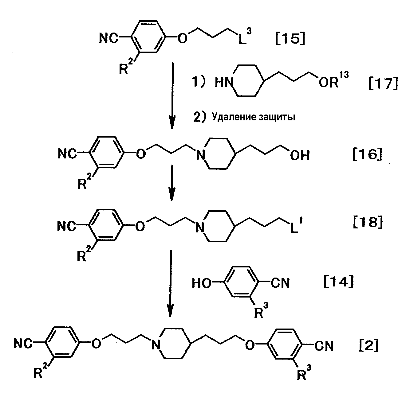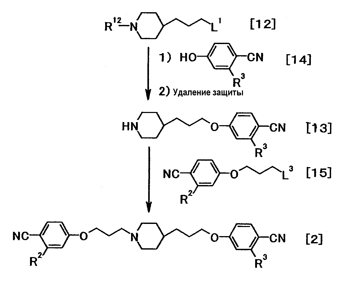 Соединение общей формулы (1b) можно получить из соединения общей формулы (2). Соединение общей формулы (1b) затем можно подвергнуть алкилированию или ацилированию с получением соединения общей формулы (Ic). Соединение общей формулы (Ic) затем можно подвергнуть восстановлению с получением соединения общей формулы (1a). Кроме того, соединение общей формулы (1b) может быть восстановлено с получением соединения общей формулы (1a). Эти реакции можно осуществить способами, описанными, например, в Tetrahedron, 51:12047-12068, 1995; Synthetic Communication, 26:4351-15 4367, 1996; Synthesis, 16:2467-2469, 2003; Heterocycles, 60:1133-1145, 2003; и Bioorganic and Medicinal Chemistry Letter, 12:1203-1208, 2002, или аналогичными способами.