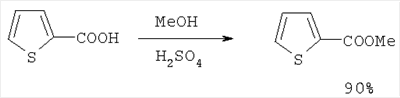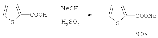 В связи с этим перед авторами была поставлена задача получить метиловые эфиры 2-тиофенкарбоновой кислоты с более высокими выходами, упростить и удешевить технологию.