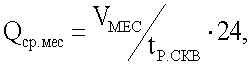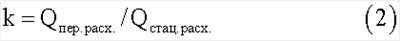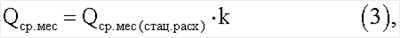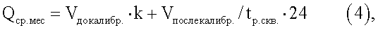 где Qcp.мес – среднемесячная приемистость (м3/сут); Vмес – объем закачки за месяц, м3; tр.скв. – время работы скважины за месяц, час. В случае, если калибровка счетчика не производилась, но отклонение в показаниях счетчиков существует, среднемесячная приемистость умножается на коэффициент отклонения показаний переносного и стационарного расходомеров: где k – коэффициент отклонения показаний переносного и стационарного расходомеров, Qпер.расх. – приемистость скважины, замеренная переносным расходомером, Qстац.расх. – приемистость скважины, замеренная стационарным расходомером, Qcp.мес (стац.расх.) – среднемесячная приемистость скважины по данным стационарного расходомера. 4. При выявлении отклонений в показаниях стационарного расходомера через 2-5 суток и калибровке стационарного расходомера объем закачки до калибровки считается с учетом отклонений в показаниях стационарного и калибровочного переносного расходомера, а объем закачки после калибровки считается по показаниям стационарного расходомера. В этом случае среднемесячная приемистость считается по формуле (4) где Vдо калибр. – объем закачки до калибровки счетчика, Vпосле калибр. – объем закачки после калибровки счетчика. 5. Данная среднемесячная приемистость закладывается в режимные данные следующего месяца. Пример конкретного выполнения. Разрабатывают нефтяную залежь со следующими характеристиками: глубина залежи 1147,5 м, глубина водонефтяного контакта 1000 м, пластовое давление 12,5 МПа, пластовая температура 28°С, пористость 16%, проницаемость 0,171 мкм2, нефтенасыщенность 0,8, вязкость нефти в пластовых условиях 1,8 МПа·с, плотность нефти в поверхностных условиях 0,916 г/см3, давление насыщения 5 МПа, газовый фактор 3,557 м3/т, коллектор – поровый. Проницаемость пластов колеблется от 0,176 до 0,083 мкм2. Балансовые запасы колеблются по пластам от 17000 до 100000 тыс.т. Закачивают рабочий агент – сточную воду через 250 нагнетательных скважин, отбирают нефть через 600 добывающих скважин. Из 250 нагнетательных скважин 100 скважин работают в режиме циклической закачки (15 сут. закачка/ 15 сут. ограничение закачки). Эти 100 циклируемых скважин оказывают влияние на 240 добывающих скважин. После полуцикла ограничения закачки на 100 скважинах эти скважины запускают в работу. В течение 5 суток на этих скважинах производят замеры приемистости переносным калибровочным расходомером и сравнивают с показаниями стационарных приборов. По показаниям стационарного расходомера считают среднемесячную приемистость скважин. В случае, если значения стационарного и переносного приборов совпадают, среднемесячная приемистость определяется по формуле (1). В случае, если калибровка стационарных приборов не производилась, но существуют отклонения в показаниях, среднемесячная приемистость определяется по формуле (3). В случае, если производилась калибровка стационарных приборов, среднемесячная приемистость определяется по формуле (4). После 2 дней закачки на циклируемой скважине А была замерена приемистость с помощью переносного расходомера и произведена калибровка стационарного расходомера, установленного на блочной гребенке (БГ). Отклонение в показаниях счетчиков k до калибровки, определенное по формуле (2), составляло 1,5. По показаниям стационарного расходомера за месяц в скважину было закачано 3603 м3, скважина прораб