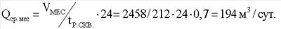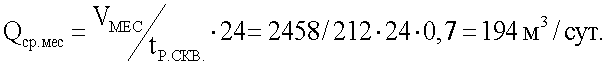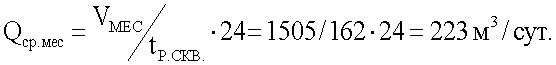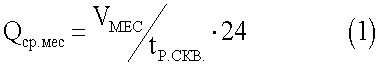 где Qср.мес – среднемесячная приемистость, м3/сут; Vмес – объем закачки за месяц, м3; tр.скв. – время работы скважины за месяц, час, и подсчитанную среднемесячную приемистость назначают в качестве режима на следующий цикл работы нагнетательной скважины. Признаками изобретения являются: 1) отбор нефти через добывающие скважины; 2) закачка рабочего агента через нагнетательные скважины в циклическом режиме; 3) определение приемистости нагнетательных скважин; 4) учет приемистости при назначении режимов работы нагнетательных скважин; 5) замер приемистости нагнетательной скважины через 2-5 суток после полуцикла ограничения закачки и запуска нагнетательной скважины в работу; 6) формула для подсчета среднемесячной приемистости скважины; 7) назначение подсчитанной среднемесячной приемистости в качестве режима на следующий цикл работы нагнетательной скважины. Признаки 1-4 являются общими с прототипом, признаки 5-7 являются существенными отличительными признаками изобретения. Сущность изобретения Способ разработки нефтяной залежи включает отбор нефти через добывающие скважины, закачку рабочего агента через нагнетательные скважины в циклическом режиме, определение приемистости нагнетательных скважин и ее учет при назначении режимов работы нагнетательных скважин. Неточный режим работы нагнетательной скважины приводит к перерасходу рабочего агента, прорывам рабочего агента к добывающим скважинам, заводнению залежи и захоронению запасов в пластах или к снижению пластового давления и к недоизвлечению запасов нефти. Все это отрицательным образом влияет на нефтеотдачу залежи. В предложенном способе решается задача повышения нефтеотдачи залежи. Задача решается следующим образом. Обычно режим работы нагнетательных скважин на следующий месяц составляется по данным работы скважины в текущем месяце. Для расчета берутся данные переносного расходомера, так как погрешность стационарных расходомеров значительно выше и их калибровка осуществляется с помощью переносных расходомеров. По существующим требованиям необходимо производить замеры переносным или стационарным расходомером не реже одного раза в месяц, контрольные замеры – не реже одного раза в три месяца, причем по скважинам, работающим по две и более на водоводе, расход воды должен замеряться на устьях скважин не менее 1 раза в месяц одновременно для определения их долей в общем расходе воды по водоводу, контрольные замеры расхода закачиваемой воды по всем стационарным расходомерам должны осуществляться не реже 1 раза в квартал с помощью переносных накладных расходомеров. Для составления режима берутся данные расходомера, полученные в любой день работы скважины, независимо от того, сколько дней, сколько часов скважина проработала. Приемистость нагнетательных скважин никогда не бывает постоянной величиной и всегда меняется. Можно принять ее относительно постоянной, если скважина редко останавливается, и при этом останавливается на короткое время, если отбор на добывающих скважинах постоянен и соизмерим с закачкой, если существует хорошая гидродинамическая связь по пласту. Если нагнетательная скважина или кустовая насосная станция (КНС) останавливается на длительное время, то после пуска скважины или КНС потребуется длительное время (5-10 дней) для того, чтобы гидр