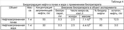Следует отметить, что процесс деструкции углеводородов (УВ) нефти осуществляется микроорганизмами, однако практическая значимость микробной деградации в конечном итоге определяется составом биопрепарата, который обеспечивает жизнеспособность бактерий, их активность, а также технологичность изготовления, хранения, транспортировки и использования.
