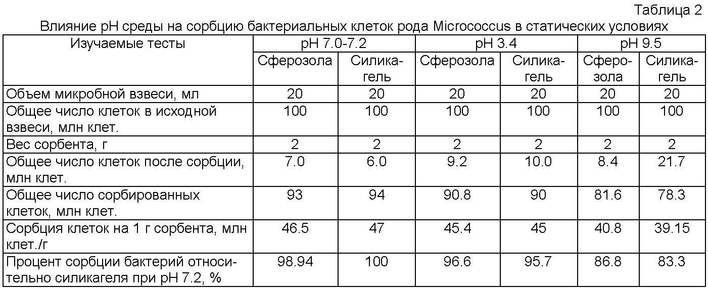 Из результатов, представленных в таблице 2, следует, что сорбционная активность микроорганизмов на поверхности сферозолы при значениях рН среды 3.4, 7.2 и 9.5 сравнима с известным дорогостоящим сорбентом – силикагелем, а из результатов, представленных в таблице 3, следует, что сорбционная активность микроорганизмов при фильтрации через слой сферозолы также не уступает сорбционной активности известного сорбента.