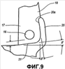 Фиг.9 – вид в сечении в увеличенном масштабе борта шины согласно фиг.6, установленного в монтажный ручей обода; и