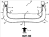 Фиг.3D – вид, подобный виду с фиг.3А, на котором большая стрелка С указывает силу 3000 фунтов, приложенную к центру участка протектора шины;