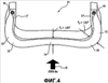 К более поздним патентам, в которых описаны непневматическая шина и комбинация шины и обода, относятся, например, патенты Великобритании  3432, 20186 и 27224, патенты Франции  338920 и 367981 и патенты США  1056976, 1178887, 3533662 и 5229047. Однако в этих патентах не раскрыта шина с кольцевой полостью, как раскрыта согласно настоящему изобретению. Далее, непневматические шины, не содержащие центральную полость, раскрыты в патентах США  4855096, 4943323, 5906836 и 6165397, выданных на имя Заявителя настоящей заявки. Кроме того, непневматическая шина согласно патентной заявке США 10/412471, поданной 9 апреля 2003 года, также не содержит уникальной аркообразной полости, т.е. такой, как описано согласно настоящему изобретению. Дополнительно, непневматические шины, содержащие внутренние полости неаркообразной формы известны из более ранних патентов Великобритании  11800 и 14997 и из более ранних патентов США  1194177 и 1670721. Эти полости предназначены для обеспечения возможности сжатия боковых стенок шины и участков бортов, чтобы шину можно было надеть на обод, и для амортизации, и такие полости создавали грузоподъемность шины, как показано в ранних патентах США  1004480 и 1004481, при этом они не были литыми шинами, в отличие от шин согласно настоящему изобретению. Ни одна из этих сплошных непневматических шин не содержит кольцевую полость уникальной формы, которая придает шине грузоподъемность, определяемую толщиной стенки, как в настоящем изобретении. Также шины, описанные в патентах США  1707014, 1940077 и 3888291, не обеспечивают грузоподъемность при снижении давления в шине до приблизительно атмосферного, как в шине по настоящему изобретению.