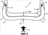Фиг.5 – вид, подобный виду с фиг.3D, на котором толщина Т1 и Т2 увеличена на 0,225 дюйма, что приводит к спрямлению кривой, образованной силой по стрелке С, направленной в центр участка протектора;