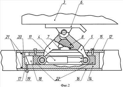 На фиг.2 схематично изображен главный вид седельно-сцепного устройства в разрезе.