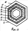 На фиг.9 изображен поперечный разрез топливного элемента, выполненного в форме шестиконечной звезды.
