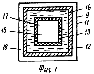 На фиг.1 изображено поперечное сечение топливного элемента, выполненного в форме квадрата.