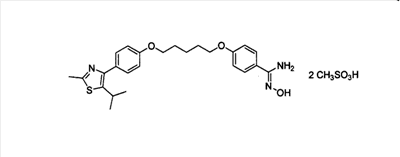 Настоящее изобретение относится к диметансульфонату N-гидрокси-4-{5-[4-(5-изопропил-2-метил-1,3-тиазол-4-ил)фенокси]пентокси}бензамидина, способу его получения, фармацевтическим композициям на его основе, пероральной фармацевтической композиции. 6 н. и 3 з.п. ф-лы, 5 табл.