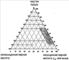 Более конкретно, представлена область, в которой соотношения в % мольн. (1) насыщенной жирной кислоты с длинной цепью (например, пальмитиновой/стеариновой), (2) ненасыщенных жирных кислот (например, олеиновой) и (3) каустика (например, ½ (Na2O)), при их объединении, дают матрицу (см. чертеж). Когда затем с заготовкой перемешивают/смешивают другие ингредиенты бруска, получают брусок с оптимальными свойствами.