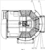 Кабина управления литейного крана содержит основание 1, крышу 2, боковое ограждение 3 с верхними окнами 4 и нижними наклонно расположенными окнами 5. В кабине установлено поворотное кресло 6 машиниста, спинка которого образована сопряженными между собой наклонной 7 и вертикальной 8 частями. Кресло 6 установлено с возможностью поворота относительно своей вертикальной оси. Снаружи кабины установлен защитный экран 9. В основании 1 выполнено отверстие 10, в котором установлена вертикальная ось 11. Один конец оси 11 размещен внутри кабины и связан с приводом 12 поворота защитного экрана 9. Второй конец оси 11 размещен вне кабины и связан с нижней частью защитного экрана 9 с помощью кронштейнов 13. Кронштейны 13 жестко прикреплены к экрану 9 и к оси 11. На боковом ограждении 3 кабины жестко закреплена дугообразная направляющая 14, имеющая в поперечном сечении преимущественно круглую или близкую к круглой форму. Направляющая 14 расположена в горизонтальной плоскости и охватывает кабину спереди и с боковых сторон. Центр окружности дугообразной направляющей 14 совмещен с осью 11 поворота защитного экрана 9. К верхней части защитного экрана 9 шарнирно, с помощью вертикальных осей 15 прикреплены ролики 16 с вогнутой опорной поверхностью 17, охватывающей дугообразную направляющую 14. Ролики 16 имеют возможность поворота в горизонтальной плоскости относительно осей 15. Защитный экран 9 выполнен в виде усиленного уголками 18 металлического листа 19 и имеет, преимущественно, прямоугольную форму. В кабине на основании 1 установлен редуктор 20, выходной вал которого соединен с осью 11, а входной вал связан с приводом 12. Управление приводом 12 может быть ручным или автоматическим. В примере конкретного выполнения представлено ручное управление приводом с помощью рукоятки 21. К основанию 1 прикреплен, по меньшей мере, один слой жаропрочного войлока 22. На концах направляющей 14 смонтированы ограничители 23. Экран 9 размещен наклонно. Угол наклона экрана 9 соответствует углу наклона окон 5. При своем перемещении экран 9 расположен в непосредственной близости от бокового ограждения 3 кабины. Нижняя часть экрана расположена ниже основания 1 кабины, а верхняя – не ниже линии сопряжения наклонной и вертикальной частей спинки кресла 6. Ширина экрана 9 выполнена не меньше, чем половина ширины кабины.
