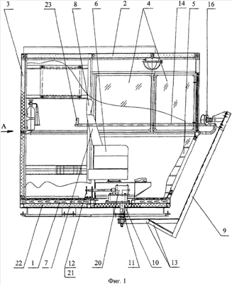 На фиг.1 изображена кабина, вид сбоку;