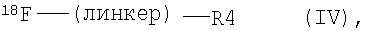 24. Способ получения изображения организма человека или животного, включающий введение в указанный организм соединения по любому из пп.14-20 и получение изображения по меньшей мере части указанного организма, в которой указанное соединение было распределено, с использованием ПЭТ (позитронная эмиссионная томография).