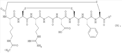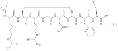 где а представляет собой целое число от 1 до 10, или вектор представляет собой (дисульфид Cys1-6): -CH2CONH(CH2)5CO-Cys-Tyr-Ile-Gln-Asn-Cys-Pro-Leu-Gly-NH2.