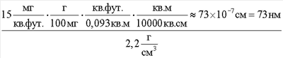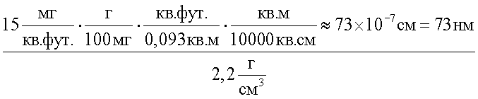 Удельная плотность покрытия г/кв.фут (мг/м2) |