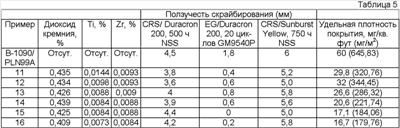 Одним из преимуществ покрытий в соответствии с изобретением является то, что они обеспечивают сравнимую и в большинстве случаев улучшенную коррозионную стойкость по сравнению с существующей в настоящее время технологией нанесения покрытий из фосфата железа. Такое улучшение коррозионной стойкости достигается посредством нанесения покрытия, существенно меньшего, чем покрытия из фосфата железа. Например, чтобы обеспечить приемлемую степень коррозионной стойкости панели из CRS, удельная плотность покрытий из фосфата железа составляет приблизительно от 50 до 150 мг/кв. фут (538,2-1614,59 мг/м2). Покрытие же в соответствии с изобретением может обеспечить такую же степень коррозионной стойкости при удельной плотности покрытия, составляющей от 8 до 30 мг/кв. фут (86,11-322,92 мг/м2). В большинстве случаев покрытие в соответствии с изобретением имеет приемлемую степень коррозионной стойкости при удельной плотности покрытия, составляющей от 8 до 20 мг/кв. фут (86,11-215,28 мг/м2).