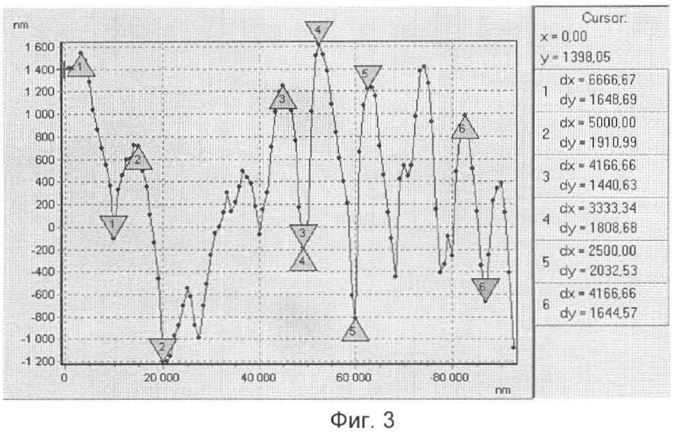 Фиг.3. Сечение рельефа биоактивного покрытия, формируемого на сплаве титана ВТ-6.