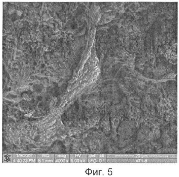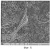 При получаемой пористости биопокрытия на поверхности имплантата определялись яркие, оксифильные участки («островки») волокнистых образований неправильной формы, что подтверждает прорастание костной ткани на поверхности имплантата (Фиг.5).