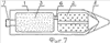 На фиг.7 представлен снаряд с передним расположением заряда твердого топлива. В данной конструкции взрыватель 7 располагается в донной части снаряда. Истечение продуктов сгорания топлива происходит через сопла 8.