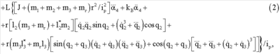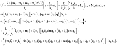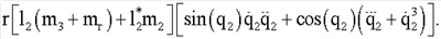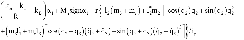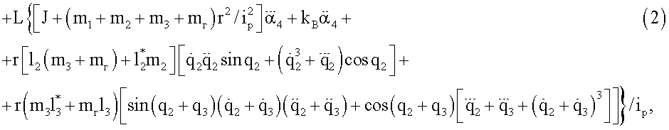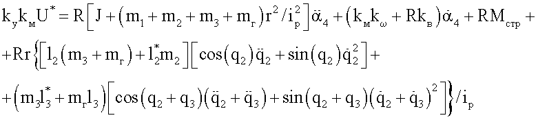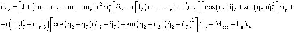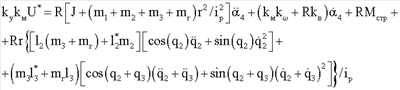 Моментные характеристики привода, управляющего координатой q4, существенно зависят от изменения координат q2, q3, , , , и груза mг. В связи с этим для качественного управления координатой q4 необходимо точно компенсировать отрицательное влияние изменения этих координат, а также переменной массы груза mг на динамические свойства рассматриваемого привода (координата q4).