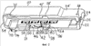 Как представлено на Фиг.2, обеспечены боковые стенки 34, 34′ чехла 20, и они включают в себя пазы 36, 36′ для выступа. Пазы 36, 36′ для выступа включают в себя отверстия 38, 38′ в нижней части боковых стенок 34, 34′, которые связаны с принимающими местами 40, 40′ и которые ограничены частично боковыми стенками 34, 34′, а также плоскостями 42, 42′ чехла 20.