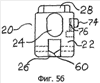 Стопорный рычаг 70 может перемещаться между, и с зацеплением с механизмом стопора, первым положением, как показано на Фиг.4, и вторым положением, как показано на Фиг.1а и 6. Длина плеча 72 рычага обеспечивает достаточную гибкость в стопорном рычаге 70, чтобы позволить опоре 76 плеча 72 рычага входить в зацепление либо с первым стопором 50, либо со вторым стопором 52, так же, как и с затвором по установленной поверхности в направляющей дорожке 48 плеча рычага чехла 20.