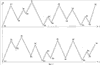 На фиг.2 приведены выборки псевдослучайного процесса нагружения. Эти выборки отличаются друг от друга только последовательностью чередования экстремумов. Величины и число экстремумов в этих выборках совпадает, т.к. этого требует сама методика испытаний.