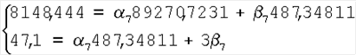 N – число режимов при проведении тепловых испытаний генератора. В качестве примера приведен расчет 7, 7 – коэффициентов исходной базовой характеристики для стержня паза 7 обмотки статора, при котором использованы данные таблиц 1, 2. Решая систему уравнений (9), получаем:
