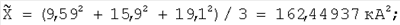 A71[X ij]=(9,592×12,1+12,72×15,9+15,32×19,1)/3=2716,148 кА2 × °С;