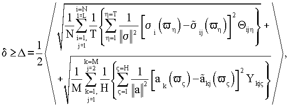 – экспериментальные значения напряжений в i контрольной точке в частотном диапазоне;