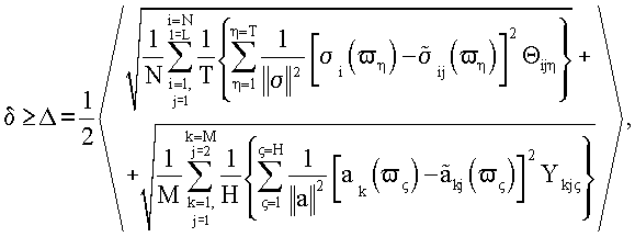 – норма по напряжениям; N – количество контрольных точек по напряжениям; i – номер контрольной точки по напряжениям; j – номер расчетного случая; Т – количество частотных диапазонов по напряжениям;