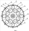 Как показано на фиг.1, поперечное сечение пенала 1 имеет восемь осей симметрии. Из них четыре оси симметрии 2 проходят через центральную ОТВС 3 и через две диаметрально противоположных ОТВС 4 внешнего ряда. Другие четыре оси 5 проходят через центральную ОТВС 3 и две диаметрально противоположных ОТВС 6 внутреннего ряда. Контрольные точки 7 и 8 заданы на пересечении внешней окружности у поверхности пенала 9 и осей симметрии 2 и 5.