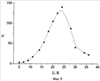 Фиг.9 показывает зависимость контраста от амплитуды напряжения U. Максимальный контраст 140:1 достигается при напряжении 20 В. Данное напряжение является предельным, до которого шаг спирали не меняется и ангармоничная структура при выключении напряжения возвращается в исходную равновесную структуру. Выше этой величины напряжения наблюдается частичная (в отдельных областях ячейки) скачкообразная раскрутка холестерической спирали, следствием чего является понижение контраста. Раскрутка происходит с образованием линий дисклинаций. Соответственно, после выключения поля, раскрученная структура через дисклинации медленно релаксирует к равновесной структуре с исходным шагом холестерической спирали.