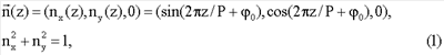 где Р – шаг спирали, а 0 – угол ориентации директора на одной из границ слоя при z=0.