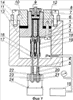 Устройство заполнения исследуемой жидкостью измерительных камер для приборов и установок высокого давления, представленное на фиг.1, содержит корпус 1 с жесткими верхними частями 2 и 3 каналов заполнения 4 и 5. Каналы заполнения 4 и 5 герметизированы прокладкой 6, запрессованной в обтюратор 7, который прижимается к корпусу 1 гайкой 8 через уплотнение 9. Корпус 1 закреплен на фланце 10 через уплотнение 11 с помощью винтов 12. Фланец 10 прикреплен к сосуду высокого давления 13 с помощью болтов 14. Сосуд высокого давления 13 соединен с источником высокого давления 15. В сосуде высокого давления 13 проходят нижние жесткие части 16 и 17 каналов заполнения 4 и 5.