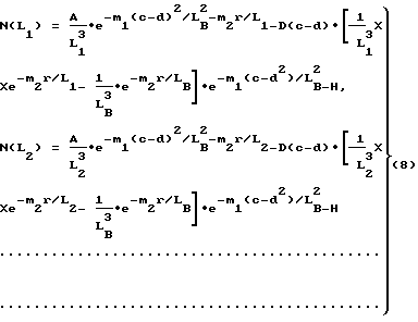 ) горных пород по данным гамма-каротажа и плотностного гамма-гамма каротажа, по значениям которых выделяют водородосодержащие и неводородосодержащие пласты, для расчета длины замедления быстрых нейтронов в горных породах используют математические модели для водородосодержащих пластов при L 18 – 20 см![]() для неводородосодержащих пластов при L 18 – 20 см![]() где А, D, m1 и m2 – постоянные коэффициенты; Н – постоянный член уравнений; Lв – длина замедления быстрых нейтронов в скважинном флюиде; с – диаметр скважины; d – диаметр скважинного прибора, причем перед исследованием неизвестных сред в скважинах дополнительно проводят измерения потоков надтепловых нейтронов в эталонных средах с неизвестными длинами замедления быстрых нейтронов L, Lв и диаметром скважин, по результатам которых рассчитывают постоянные коэффициенты А, D, m1, m2 и постоянный член уравнений Н, для чего решают системы нелинейных уравнений раздельно для водородосодержащих (L 18 – 20 см) и неводородосодержащих (L 18 – 20 см) сред.