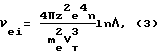 И, окончательно:![]() Благодаря силе, действующей со стороны поля на электрон, ему сообщается энергия на длине свободного пробега: W = eE![]() , (10)где ![]() средняя скорость теплового движения (для случая максвелловского распределения по скоростям);K – постоянная Больцмана; T – температура смеси; m – масса электрона; ei – 1,4 109 с-1 – частота электрон-ионных соударений, которая определяется по формуле (3).