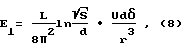 Произведем расчет энергии электронов, находящихся в соосном объеме, расположенном на различных расстояниях от электродов основного разряда. Вследствие неоднородности электрического поля между электродами основного разряда (краевые эффекты) межэлектродная емкость увеличивается на величину [3]:![]() где C – емкость в фарадах;L – ширина электродов; d – расстояние между электродами; S – площадь электродов. В дипольном приближении считаем, что заряд q локализован на краях электродов, расположенных в непосредственной близости к соосному объему (так как геометрия электродов имеет здесь наибольшую кривизну поверхности). Тогда напряженность электрического поля на некотором расстоянии от электродов определяется по формуле [10]:![]() где q = C U – полный избыточный заряд;U – напряжение на электродах; r – расстояние от края электродов; = 1/2 – коэффициент, учитывающий наличие двух эквивалентных краев электродов.