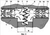 В то же время, попутно направленные выступы 14 втулок 13 в отверстии 10 не препятствуют движению потока охлаждающей и смазывающей жидкости, в связи с чем гидравлическое сопротивление потоку, проходящему через отверстие 10 в направлении к теплообменнику 16, мало, а сам расход имеет большую величину (направление движения жидкости показано стрелками).