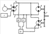 На чертеже изображена принципиальная схема гидропривода объемного регулирования с датчиками давления.
