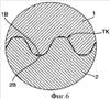 1. Составная часть измерительного преобразователя вибрационного типа, содержащая состоящую, в частности, из металла первую деталь (1) и проходящую, по меньшей мере, частично через первую деталь (1) вдоль воображаемой продольной оси (L) составную часть, состоящую, в частности, из металла вторую деталь (2), которая, по меньшей мере, частично выпуклой, выполненной, в частности, в виде поверхности цилиндра внешней поверхностью контактирует с внутренней поверхностью первой детали с возможностью, по меньшей мере, частичного охвата первой деталью, по меньшей мере, местами второй детали, причем образованные контактирующими между собой поверхностями обеих деталей, связанные между собой, в частности, с фрикционным замыканием активные поверхности (1В, 2В) составной части формованы таким образом, что обе детали (1, 2) в зоне этих активных поверхностей (1В, 2В), выполненных, в частности, в виде замкнутых периферийных поверхностей, имеют частичные контуры (ТК), которые образованы посредством проходящих круго- или спиралеобразно вокруг продольной оси бороздок, желобков или канавок, и которые, по меньшей мере, частично входят друг в друга с образованием действующего, по меньшей мере, частично также в направлении продольной оси (L) геометрического замыкания, причем вторая деталь (2) своей внешней поверхностью контактирует с внутренней поверхностью первой детали (1) таким образом, что обе детали (1, 2) частично механически прочно соединены между собой также с образованием действующего, по меньшей мере, частично в направлении продольной оси (L), в частности также в направлении периферии внешней поверхности второй детали (2), фрикционного замыкания, образованного, в частности, посредством холодной деформации, по меньшей мере, одной из обеих деталей (1, 2) и/или действующего в зоне геометрического замыкания.