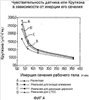 На фиг.4 показаны диаграммы крутизны чувствительности датчика в зависимости от инерции сечения его рабочего тела. Так, кривая А представляет собой теоретическую крутизну датчика описанного типа. Кривые В, С и D отражают реальные значения крутизны, измеренные для датчика с использованием разных материалов подложки 2. Кривая В является реальной кривой для известного датчика при использовании подложки 2 из оксида алюминия.