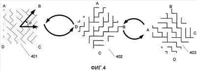 Фиг.4 – графическая иллюстрация того, как можно использовать кодирующий узор для определения поворота изображения, захваченного из части документа.