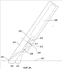 На фиг.2А и 2В показан иллюстративный пример пера 201, которое можно применять в соответствии с различными вариантами осуществления изобретения. Перо 201 включает в себя кончик 202 и камеру 203. Кончик 202 может включать или не включать в себя резервуар с чернилами. Камера 203 захватывает изображение 204 с поверхности 207. Перо 201 может также включать в себя дополнительные датчики и/или процессоры, отображенные пунктирным прямоугольником 206. Эти датчики и/или процессоры 206 могут также предусматривать способность передавать информацию в еще одно перо 201 или в еще один персональный компьютер (например, посредством протокола Bluetooth или других протоколов беспроводной связи).
