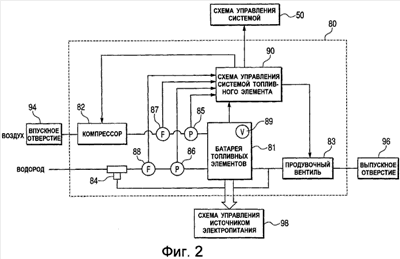 На Фиг. 2 изображена блок-схема, на которой показан пример внутренней структуры топливного элемента 80, установленного в однообъективном зеркальном цифровом фотоаппарате, показанном на Фиг. 1A и Фиг. 1Б.