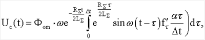 Интерес представляет исследование при t> t, тем более, что при t= t обе части «сшиваются» и максимальное напряжение на электрической емкости возможно оценить, не рассматривая диапазон t t.