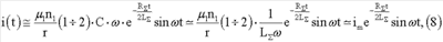 Амплитуда тока i значительно меньше, чем амплитуда напряжения на емкости С или индуктивности L, так как ток контура пропорционален второй производной импульса и величине емкости, которая на много порядков меньше величины индуктивности.